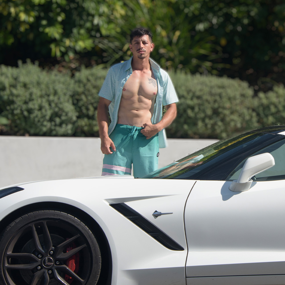Rich Forbes Wearing a Hurley Shirt and Boardshorts